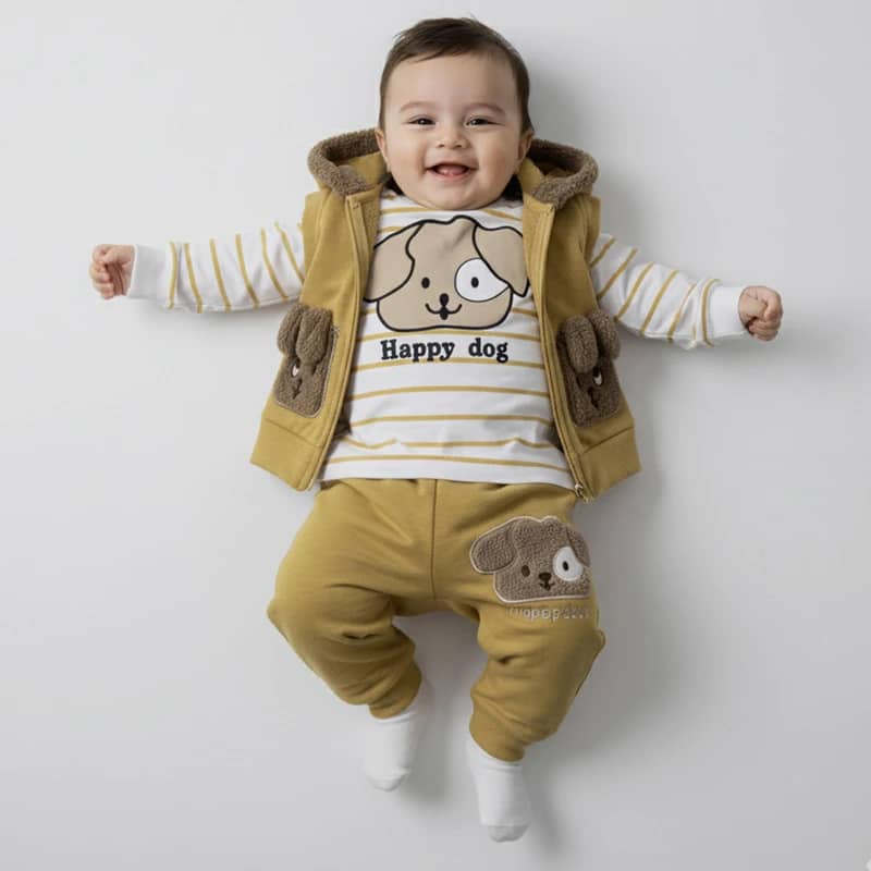 ست 3 تکه لباس نوزادی مدل Happy Dog کد Ne3